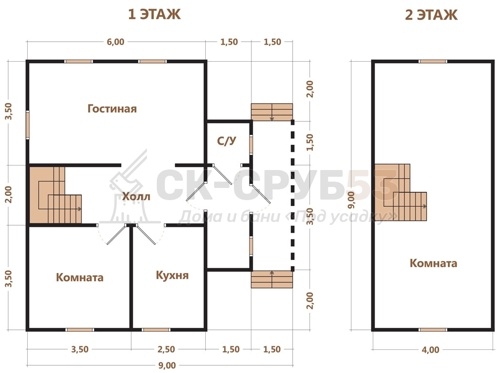 СТЕНЫ                                                             (1-ый этаж) профилированный брус 90×140.140×140.190×140 с наружней стороны прямой или под блок-хаус.