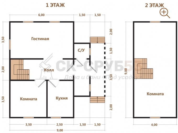ПЕРЕГОРОДКИ в СРУБЕ                              (1-ый этаж) профелированный брус 90×140 с врезкой в капитальные стены