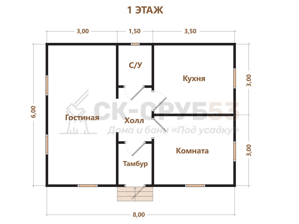 ОКНА-ДВЕРИ                                                 технические проемы.(для укрепления конструкции остовляются перевязочные венцы (1-2шт в каждом проеме).