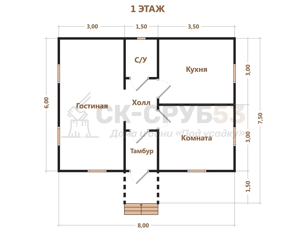 ОКНА-ДВЕРИ                                                 технические проемы.(для укрепления конструкции остовляются перевязочные венцы (1-2шт в каждом проеме).