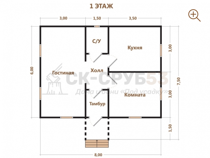 ПЕРЕГОРОДКИ в СРУБЕ                              (1-ый этаж) профелированный брус 90×140 с врезкой в капитальные стены